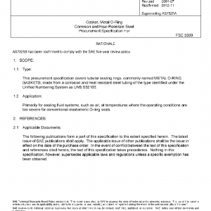 This procurement specification covers tubular sealing rings, commonly named METAL O-RING GASKETS, made from a corrosion and heat resistant steel tubing of the type identified under the Unified Numbering System as UNS S32100.