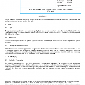 This procurement specification covers aircraft quality bolts and screws made from a low alloy steel of the type identified under the Unified Numbering System as UNS G87400, and of a series of room temperature tensile strengths ranging from 125 000 to 185 000 psi.