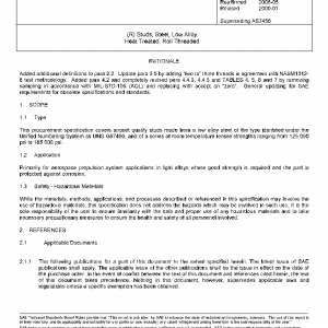 This procurement specification covers aircraft quality studs made from a low alloy steel of the type identified under the Unified Numbering System as UNS G87400, and of a series of room temperature tensile strengths ranging from 125 000 psi to 185 000 psi.