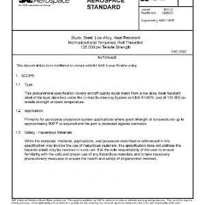 This procurement specification covers aircraft quality studs made from a low alloy, heat resistant steel of the type identified under the Unified Numbering System as UNS K14675, and of 135 000 psi tensile strength at room temperature.
