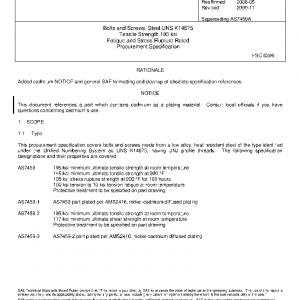 Bolts and Screws, Steel UNS K14675 Tensile Strength 195 ksi Fatigue and Stress-Rupture Rated Procurement Specification