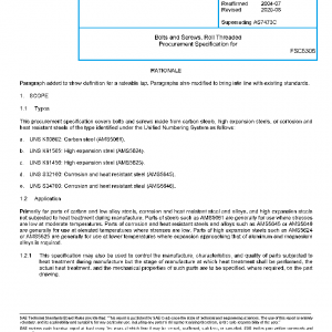 This procurement specification covers bolts and screws made from carbon steels, high expansion steels, or corrosion and heat resistant steels of the type identified under the Unified Numbering System as follows: