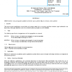 This procurement specification covers bolts and screws made from a corrosion and heat resistant, age hardenable iron base alloy of the type identified under the Unified Numbering System as UNS S66286.