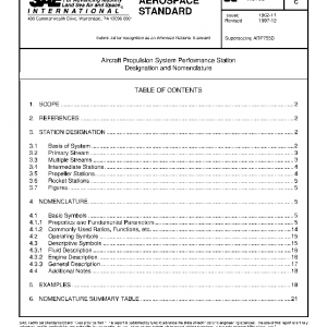 This SAE Aerospace Standard (AS) provides performance station designation and nomenclature systems for aircraft propulsion systems and their derivatives.