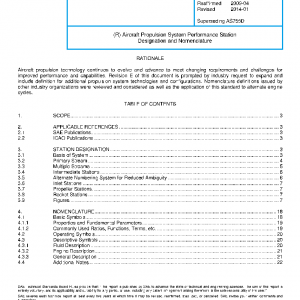 This SAE Aerospace Standard (AS) provides performance station designation and nomenclature systems for aircraft propulsion systems and their derivatives.
