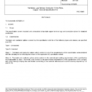This specification covers insulated and uninsulated crimp-style copper terminal lugs and conductor splices for stranded conductors.