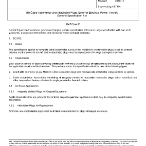 This specification applies to complete cable assemblies (using either molded on or attachable plugs) used to connect external electric power to aircraft and to attachable plugs used as replacement for plugs damaged in service.