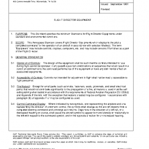 This Aerospace Standard covers Flight Director Equipments which display to the pilot a computed command for the operation of an aircraft in accordance with selected Mode(s). The term “Equipment” may include controls, displays, computers, etc. and may include sensors if furnished as a part of the Flight Director.