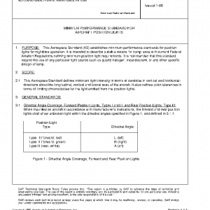 This Aerospace Standard defines minimum light intensity in terms of candelas in vertical and horizontal-directions about the longitudinal, vertical and lateral axes of the aircraft. It also defines color tolerances in terms of limiting chromaticities for the light emitted from the position lights.