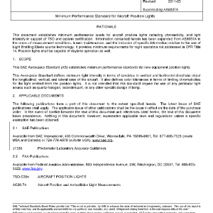 This SAE Aerospace Standard (AS) establishes minimum performance standards for new equipment position lights.