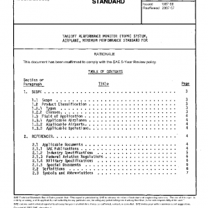 This Aerospace Standard (AS), establishes minimum performance standards for those sensors, computers, transponders, and airplane flight deck controls/displays which together comprise a Takeoff Performance Monitor (TOPM) System. This standard also defines functional capabilities, design requirements, and test procedures. A TOPM system is intended to monitor the progress of the takeoff and to provide advisory information which the crew may use in conjunction with other available cues to decide to continue or abort the takeoff. See Appendix A for supplementary information relating to NTSB, CAA, and ad hoc committee concerns and background information.