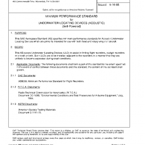 This AS covers Underwater Locating Devices (ULD) to assist in finding flight recorders, cockpit recorders or aircraft or both. Such ULDs are to be installed adjacent to the recorders in a manner that they are unlikely to become separated during crash conditions.
