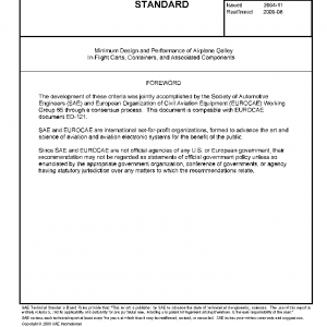 This SAE Aerospace Standard (AS) establishes minimum design and performance requirements for carts, containers and associated components intended for installation in galleys and other areas of transport category airplanes. The requirements include establishing installation criteria for use by compartment designers and installers of the equipment.