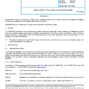 The AS81824 specification covers environment resistant, permanent crimp type, splices having heat shrinkable insulating sleeve and meltable environmental seals or heatless sealing sleeves. The splices may be used with tin, nickel, and silver-plated conductors in applications where the total temperature of the splice application does not exceed 200 °C or as specified in the detail specification.