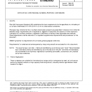 This SAE Aerospace Standard (AS) establishes the basic requirements for the specification and testing of air surface (intermodal) 8 ft x 8 ft (2.44 m x 2.44 m) cross-section containers.