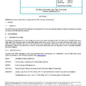 This SAE Aerospace Standard (AS) defines the requirements for loop type clamps primarily intended for general clamping of tubing for aircraft hydraulic systems.