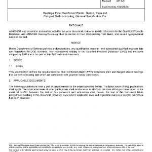 This specification defines the requirements for fiber reinforced plastic (FRP) composite plain and flanged sleeve bearings that are self-lubricating and which are compatible with graphite-epoxy composites.