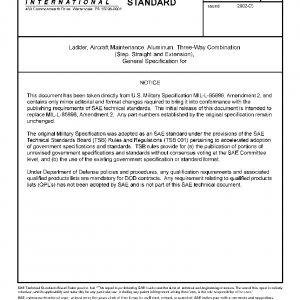 This specification establishes the requirements for the manufacture and acceptance of three-way combination (step, straight and extension) aluminum ladders for aircraft maintenance use.