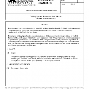 Deicing System, Pneumatic Boot, Aircraft, General Specification For