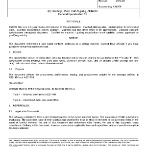 This specification covers all metal plain spherical bearings which are self-aligning for use between 65 °F to 250 °F. This specification covers bearings with alloy steel races, aluminum bronze races, and an entierly CRES bearing (ball and race). All units are inches, unless otherwise stated.