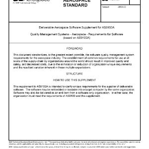 Deliverable Aerospace Software Supplement for AS9100A Quality Management Systems – Aerospace – Requirements for Software (based on AS9100A)