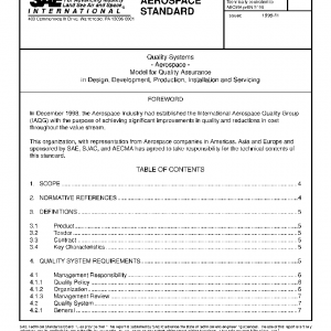 Quality Systems – Aerospace – Model for Quality Assurance in Design, Development, Production, Installation and Servicing
