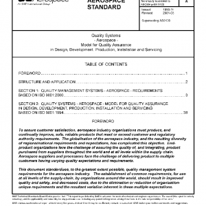 Quality Systems – Aerospace – Model for Quality Assurance in Design, Development, Production, Installation and Servicing