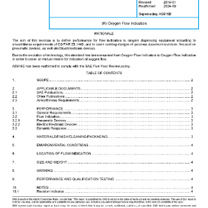 This SAE Aerospace Standard (AS) defines the overall requirements applicable to oxygen flow indication as required by Airworthiness Requirements of CS/FAR 25.1449 to show that oxygen is being delivered to the dispensing equipment. Requirements of this document shall be applicable to any type of oxygen system technology and encompass “traditional” pneumatic devices, as well electric/electronic indication.