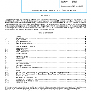 This SAE Aerospace Standard (AS) covers high strength thin wall (commercial) sockets, universal sockets, box wrenches and torque adaptors which possess the strength, clearances, and internal wrenching design so configured that, when mated with bi-hexagonal fasteners conforming to the requirements of AS870 for inch sizes and ISO 4095 for metric sizes, they shall transmit torque to the fastener without bearing on the outer 5% of the fastener’s wrenching points.
