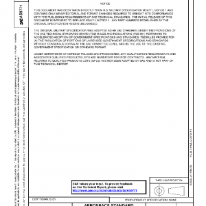 Home/SAE Standards/AS/SAE AS9771 PDF 🔍 Home/SAE Standards/AS/SAE AS9771 PDF SAE AS9771 PDF$50.00 Original price was: $50.00.$28.50Current price is: $28.50. PACKING, PREFORMED – AMS3650, SEAL SAE AS9771 PDF quantity Add to cart PDF Format Searchable Printable Bookmarks Category: AS Tags: Defense industry, Documentation, Durability, Identification, Identification numbers, Logistics, Parts, Regulations, Seals and gaskets, Technical review Guaranteed Safe Checkout Description Additional information Reviews (0) Preview PDF Description PACKING, PREFORMED – AMS3650, SEAL History AS9771A 2020-08-10 Latest Canceled AS9771 2018-08-23 Historical Reaffirmed ISSUING COMMITTEE A-6C2 Seals Committee DATE 2018-08-23 DOI https://doi.org/10.4271/AS9771 ISCURRENT PAGE 2 PUBLISHER SAE International REVISED REAFFIRMED Reviews There are no reviews yet. Be the first to review “SAE AS9771 PDF”Cancel ReplyYour email address will not be published. Required fields are marked *Your rating * Rate… Perfect Good Average Not that bad Very poor Name *Email *Your review * Save my name, email, and website in this browser for the next time I comment. Submit Please select a variation to view its pdf. Related products SAE AMS4630D PDF $54.00 Original price was: $54.00.$30.78Current price is: $30.78. Add to cart SAE AMS6328B PDF $54.00 Original price was: $54.00.$30.78Current price is: $30.78. Add to cart SAE AMS6342B PDF $54.00 Original price was: $54.00.$30.78Current price is: $30.78. Add to cart SAE AMS5061A PDF $50.00 Original price was: $50.00.$28.50Current price is: $28.50. Add to cart