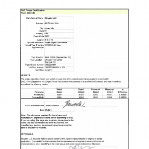 J1349 Certified Power Engine Data for Chrysler as used in 2015MY 8.4L Viper – Level 1