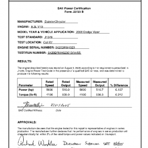 J1349 Certified Power Engine Data for DC 8.3L V10 as used in 2006 Dodge Viper Level 1