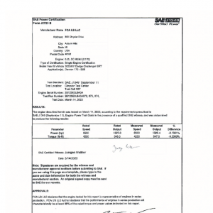 This product includes information on the manufacturer, engine, application, testing location, certified maximum horsepower, certified maximum torque along with the certified curves of horsepower and torque over a wide range of engine RPM speeds.