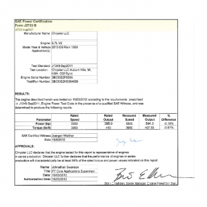 J1349 Certified Power Engine Data for Chrysler 5.7L V8 as used in 2013 DS Ram 1500 – Level 2