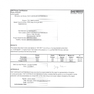 J1349 Certified Power Engine Data for Fiat Chrysler as used in 2018 Jeep Wrangler BSC – Level 2