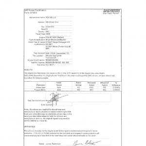 J1349 Certified Power Engine Data for FCA as used in 2018 Dodge Challenger 6.2L SC SRT/2018 Dodge Charger 6.2L SC SRT – Level 2