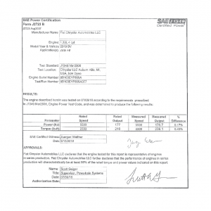 J1349 Certified Power Engine Data for Fiat Chrysler as used in 2019 BV and 2019 FD – Level 2