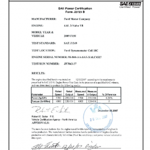 J1349 Certified Power Engine Data for Ford as used in 2009 F150 – Level 1