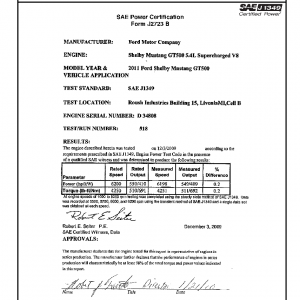 J1349 Certified Power Engine Data for Ford as used in 2011 Ford Shelby Mustang GT500 – Level 1