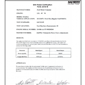 J1349 Certified Power Engine Data for Ford 3.5L as used in 2013 Ford Flex – Regular Fuel 91 RON – Level 1