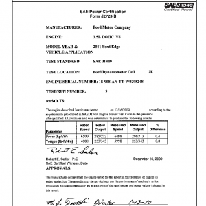 J1349 Certified Power Engine Data for Ford 3.5L DOHC V6 as used in 2011 Ford Edge – Level 2