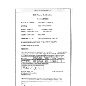 J1349 Certified Power Engine Data for Ford 2.0L GTDI DOHC I4 as used in 2015 Ford Edge – Level 2