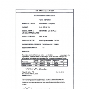 J1349 Certified Power Engine Data for Ford as used in 2015 F150 E85 Fuel – Level 2
