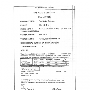 J1349 Certified Power Engine Data for Ford as used in 2015 Lincoln MKC Transient State – Level 2