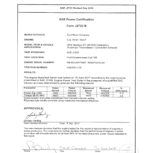 J1349 Certified Power Engine Data for Ford as used in 2018 Mustang GT 98 RON – Level 2