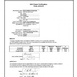 J1349 Certified Power Engine Data for GM L76 as used in 2007 Fullsize SUV’s (Suburban, Yukon XL, Avalanche) Level 1