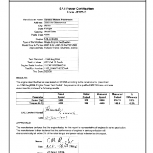 J1349 Certified Power Engine Data for GM LH6/LC9 as used in 2007 Fullsize Trucks (Silverado, Sierra) Level 1