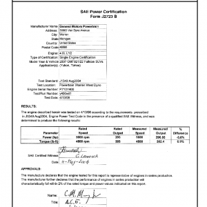 J1349 Certified Power Engine Data for GM LY2 as used in 2007 Fullsize SUV’s (Yukon, Tahoe) Level 1