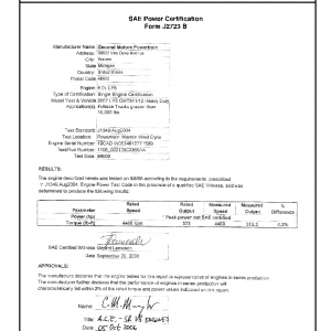 J1349 Certified Power Engine Data for GM LY6 as used in 2007 Heavy Duty Fullsize Trucks greater than 10,000 lbs – Level 1