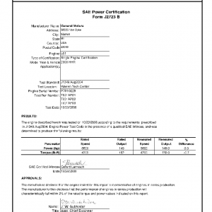 J1349 Certified Power Engine Data for GM L61 as used in 2008 HHR – Level 1